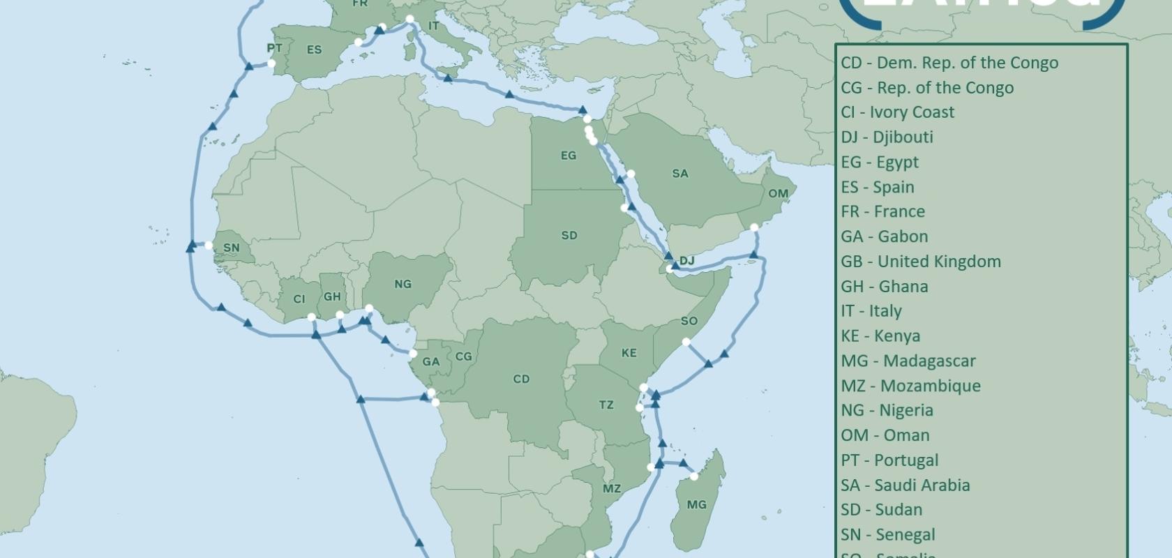 The big-name parties involved are China Mobile International, Facebook, MTN GlobalConnect, Orange, stc, Telecom Egypt, Vodafone and WIOCC. The cable will be some 37,000km long, making it one of the world’s largest subsea cable projects. It will interconnect Europe (eastward via Egypt), the Middle East (via Saudi Arabia), and 21 landings in 16 countries in Africa. The consortium has chosen Alcatel Submarine Networks to build the cable in a fully funded project.